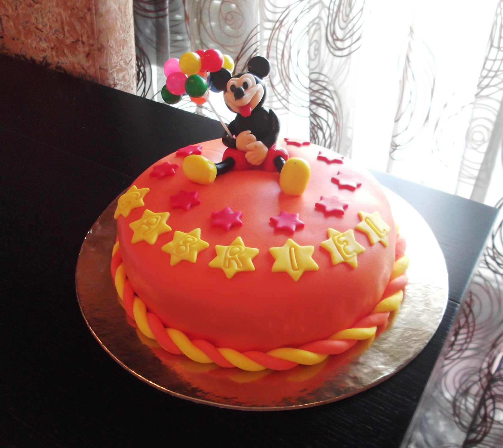 Este bolo foi para uma prima minha, o marido quis surpreende-la e pediu-me que fizesse um bolo bonito e diferente... Ora eu pus logo a minha cabeça a trabalhar e pensei?! Uma mulher gosta de flores e meti as mãos a obra e fiz muitas flores em pasta de açúcar, uma técnica demorada, mas que no final deixa um bolo lindo....